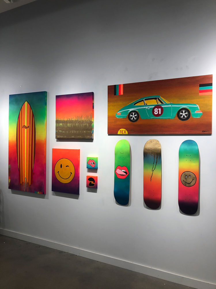 Spray acrylic, acrylic paint and gold leaf on gallery wrapped canvas.