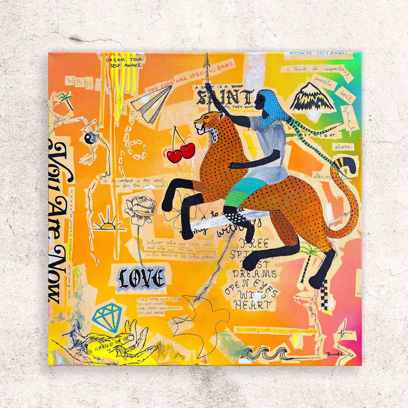 Original mixed media painting on 20 X 20 in. Stretched canvas.
